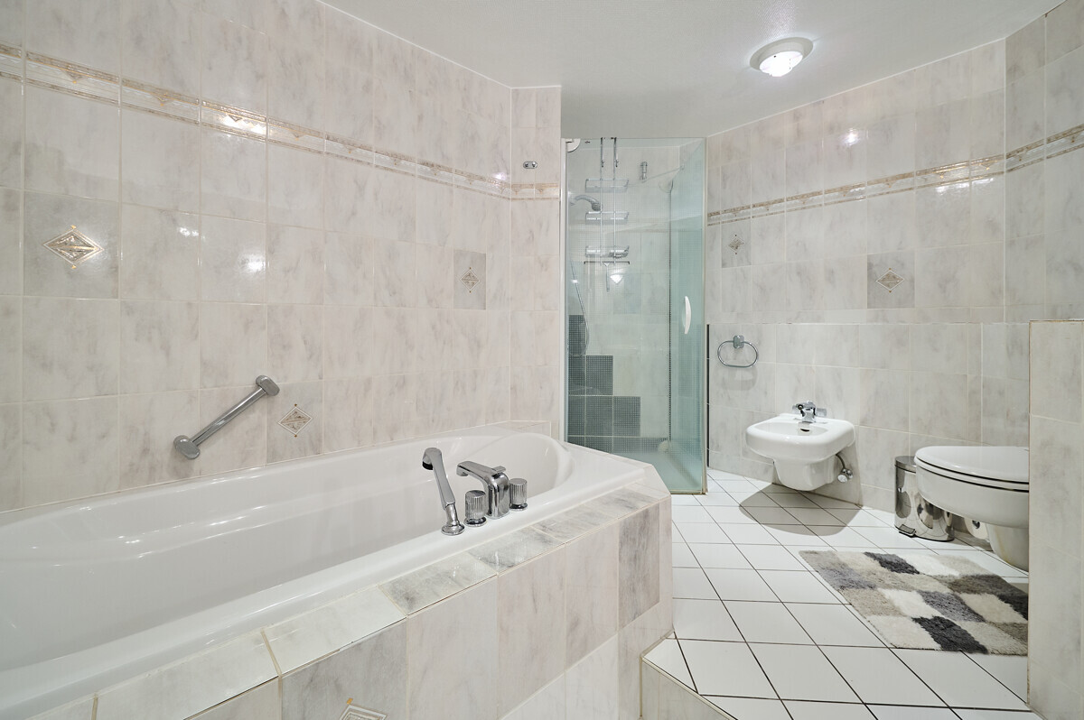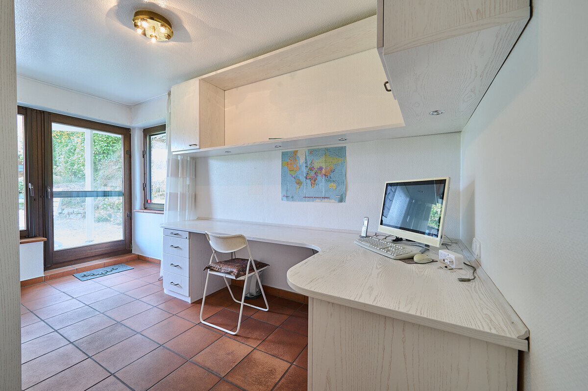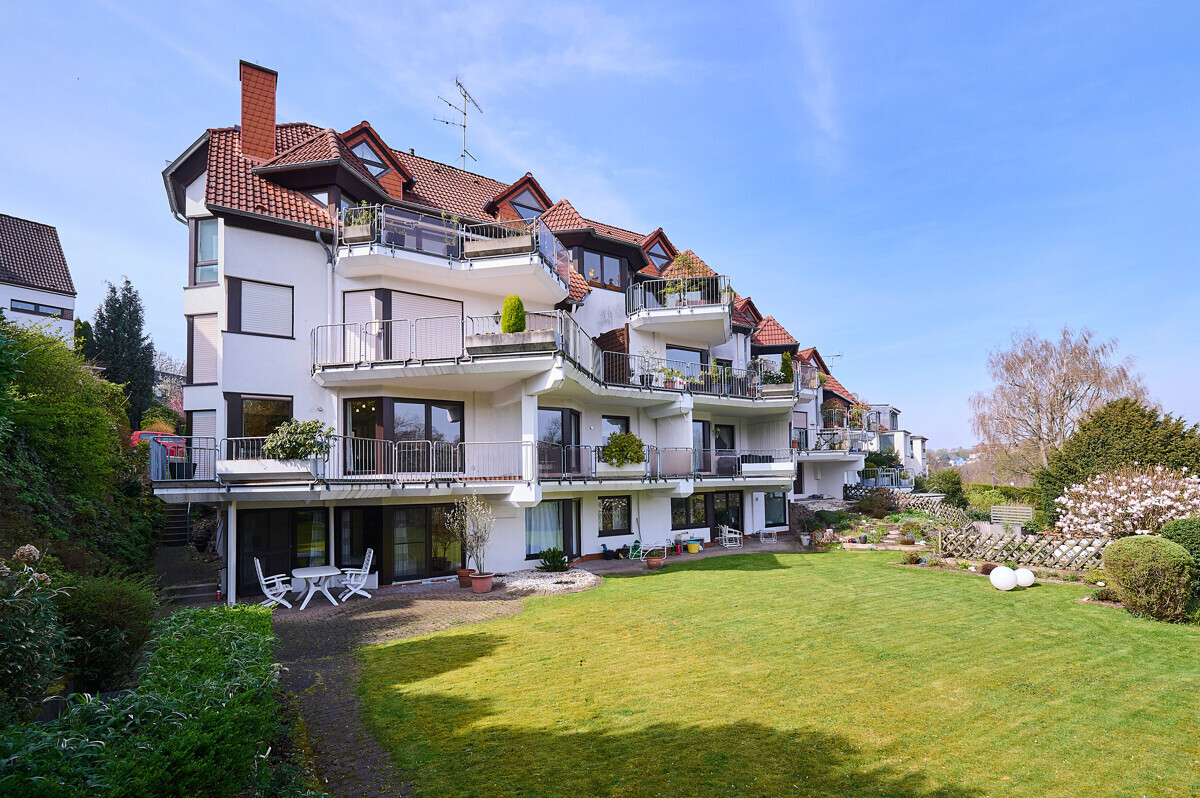 Zwei Bäder, zwei zusätzliche Gäste-WCs, Hauswirtschaftsraum sowie Stellplätze und Keller sorgen für Komfort im Alltag. Das Gartengeschoss überzeugt als ruhiger Rückzugsort mit besonderer Atmosphäre.